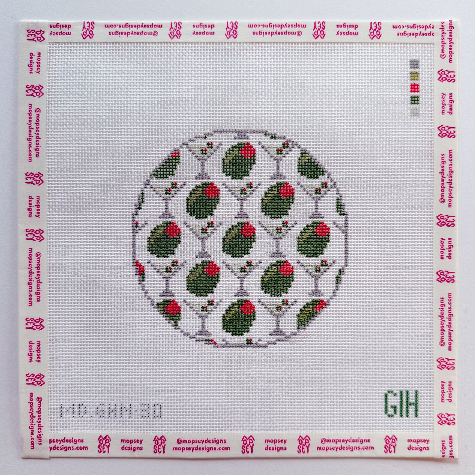 Green Heart Needlepoint: Dirty Martini Round Coaster