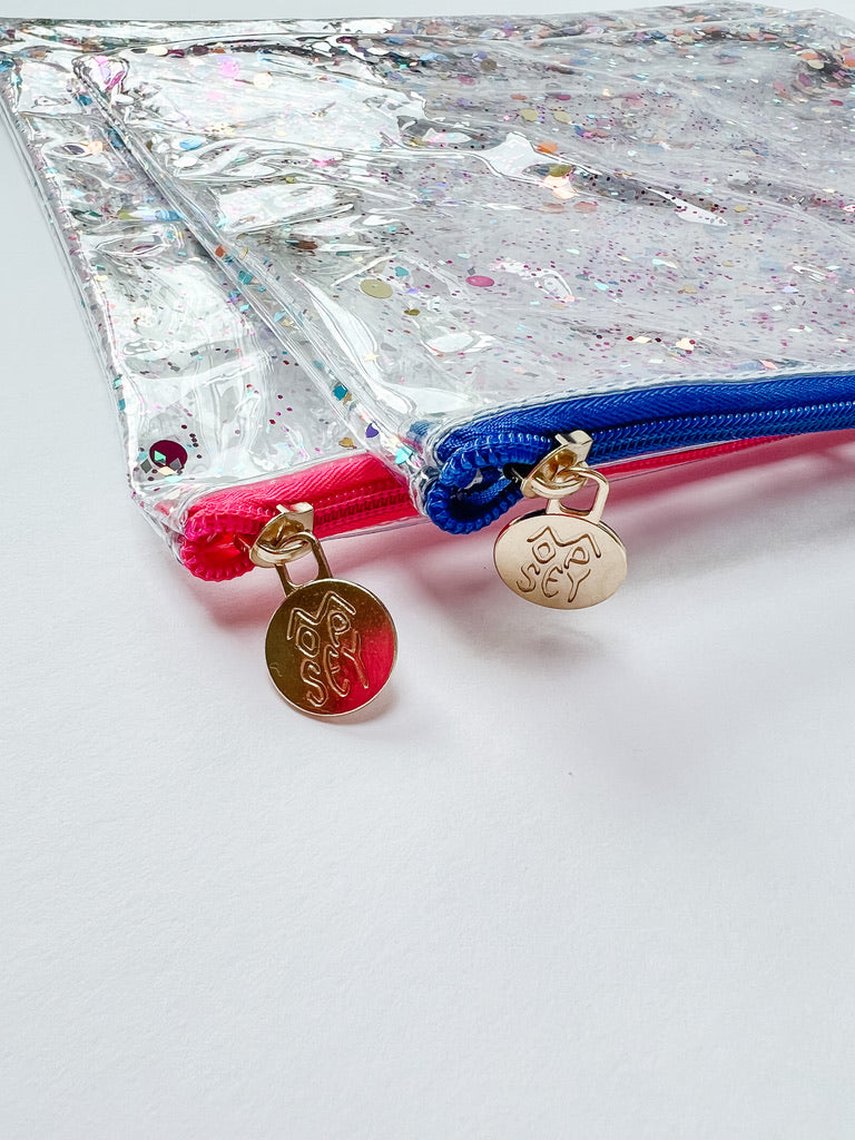 The glitter project bag is the perfect accessory to hold your needlepoint projects on the go! The glitter sits between two layers of PVC, so the glitter moves around!