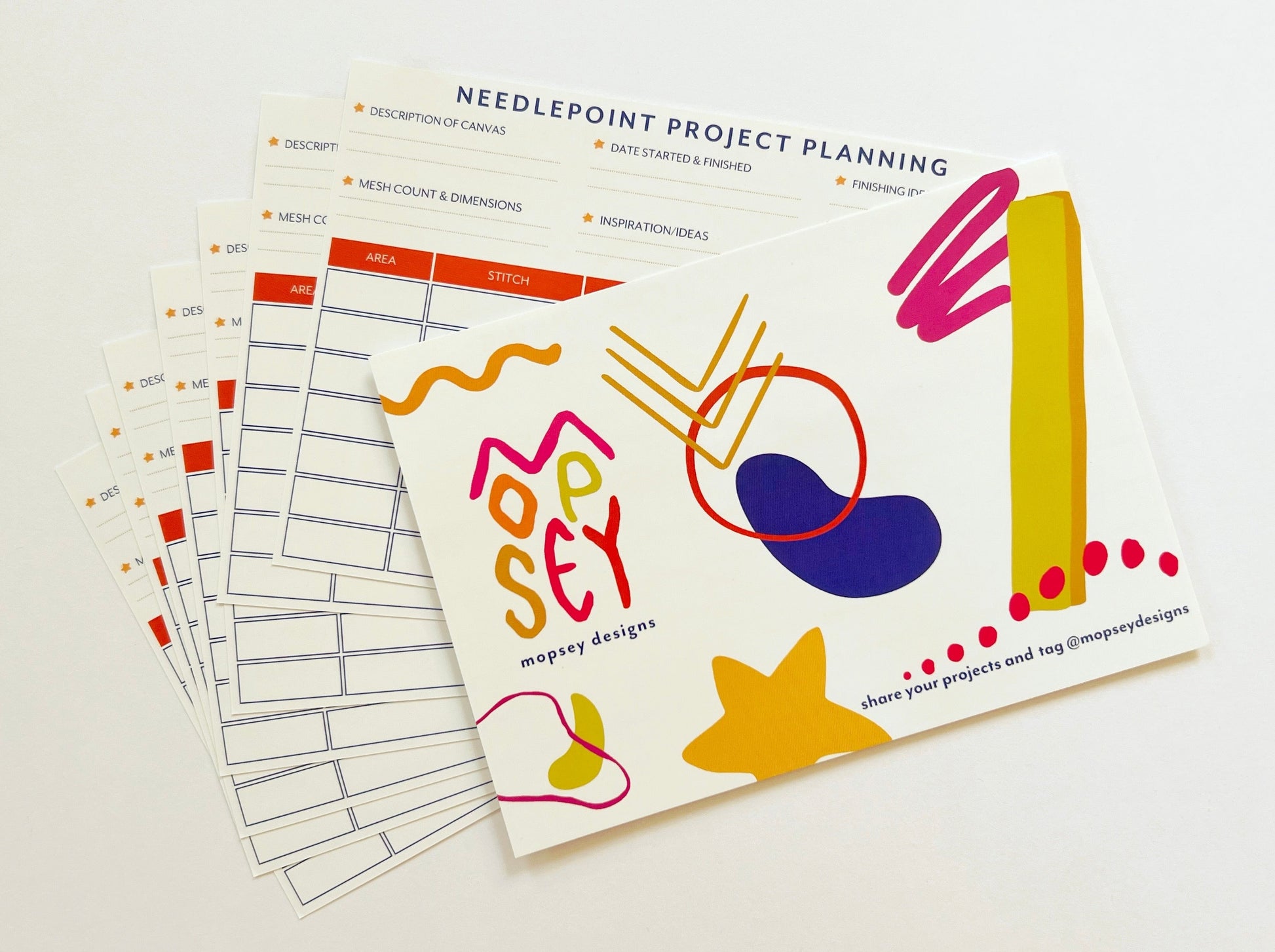 Project planning cards to help you organize your next project. These cards will help you keep track of threads used & their dye lots, stitches and your inspiration! These cards can easily be kept in your project bag and saved once you've finished stitching.