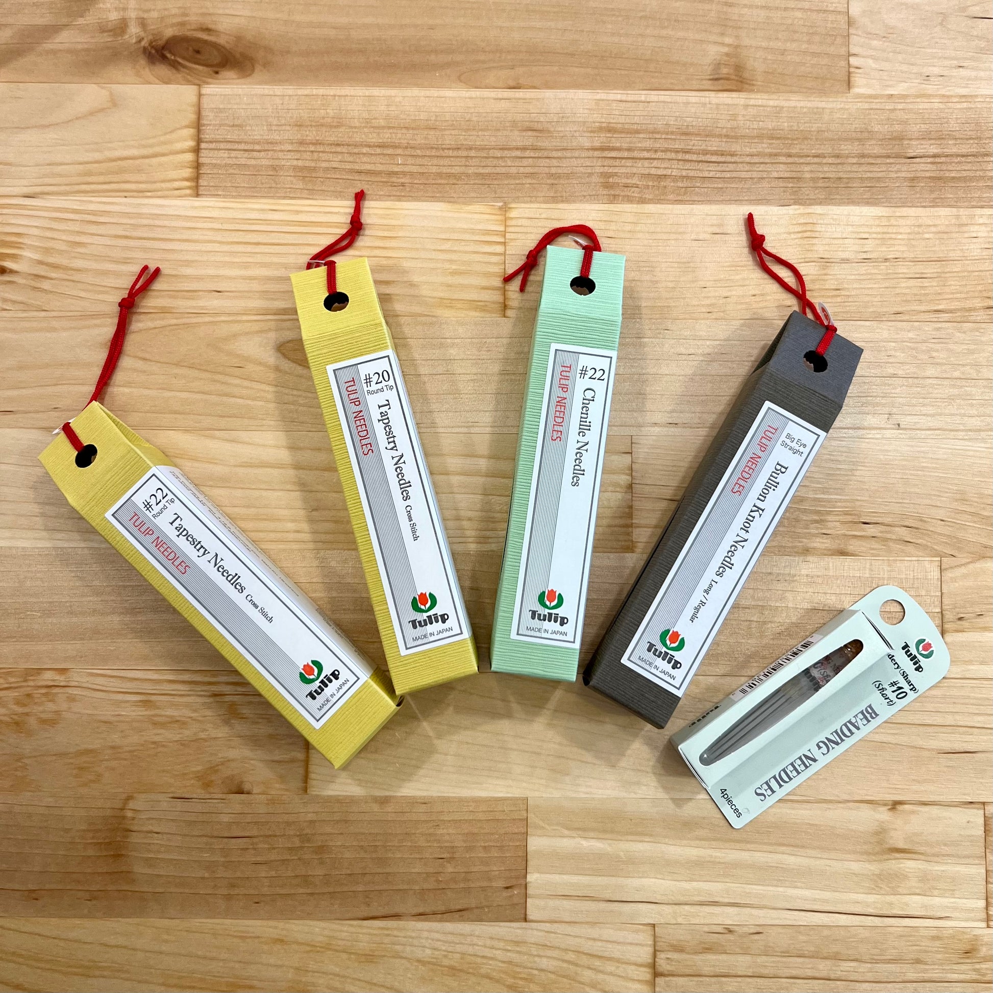 Tulip needles have a gold eye and come in a corked tube for easy storage